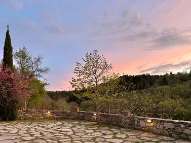 A peaceful farmhouse between Florence and Siena, surrounded by rolling hills, vineyards, and olive groves.